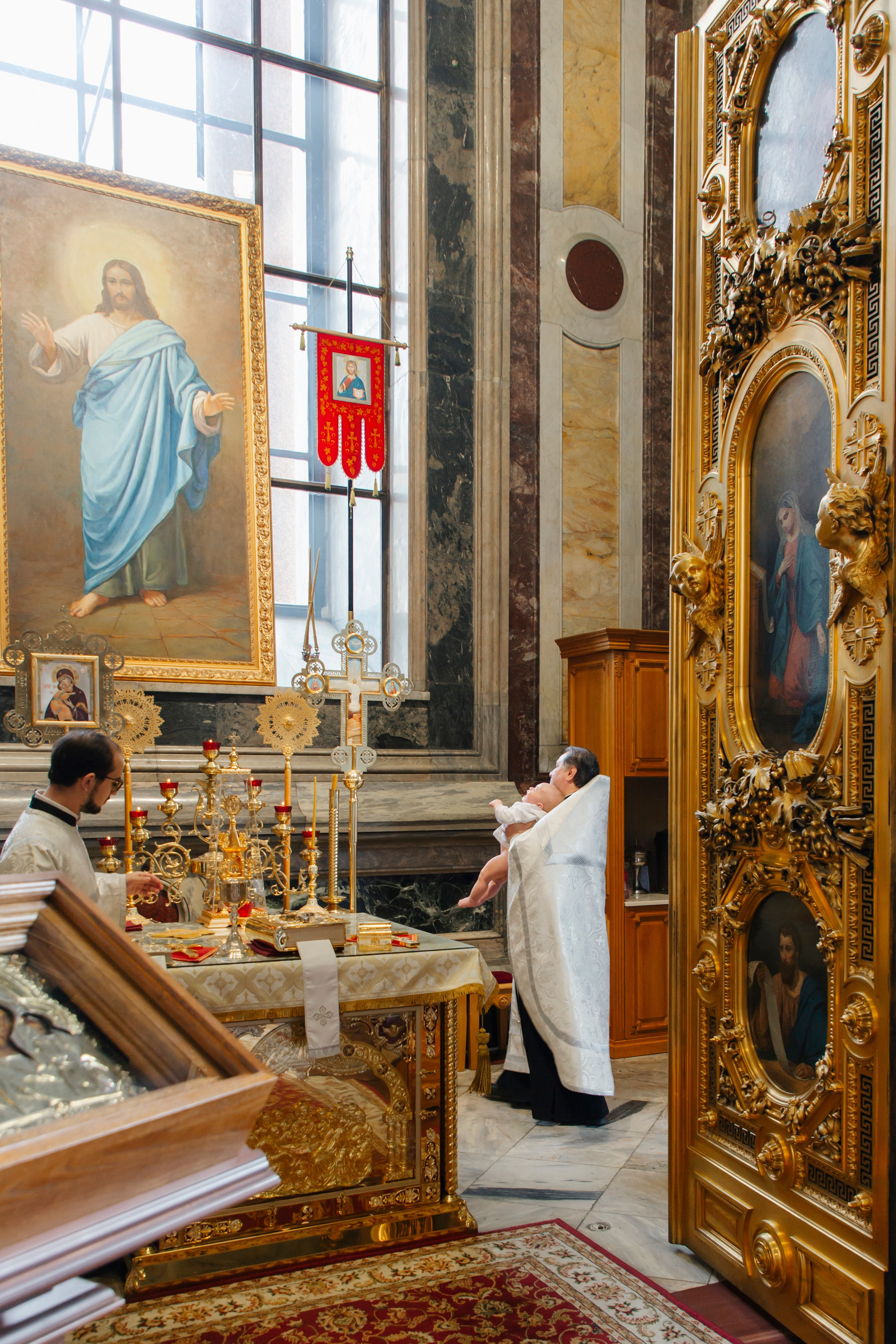 На время крещения перекрывают крестильное помещение от туристов. Стоимость индивидуального крещения в соборе на 2025г — 10 000 руб. С моими условиями можно ознакомиться в разделе «услуги«