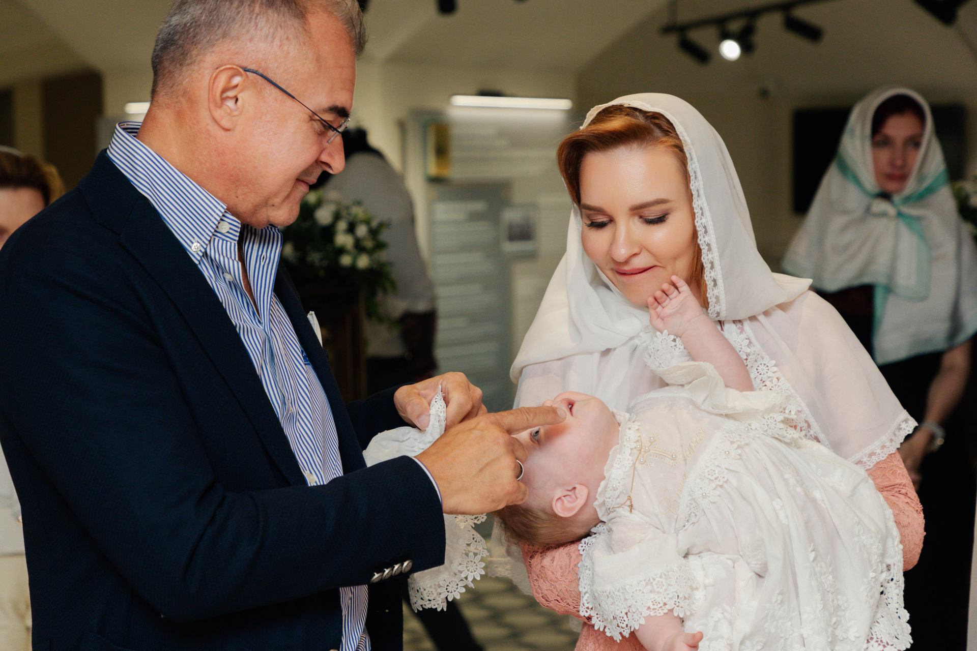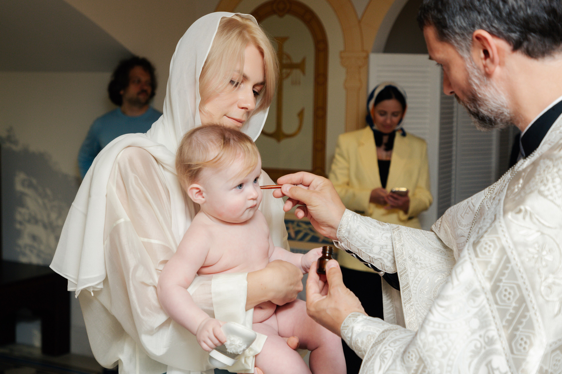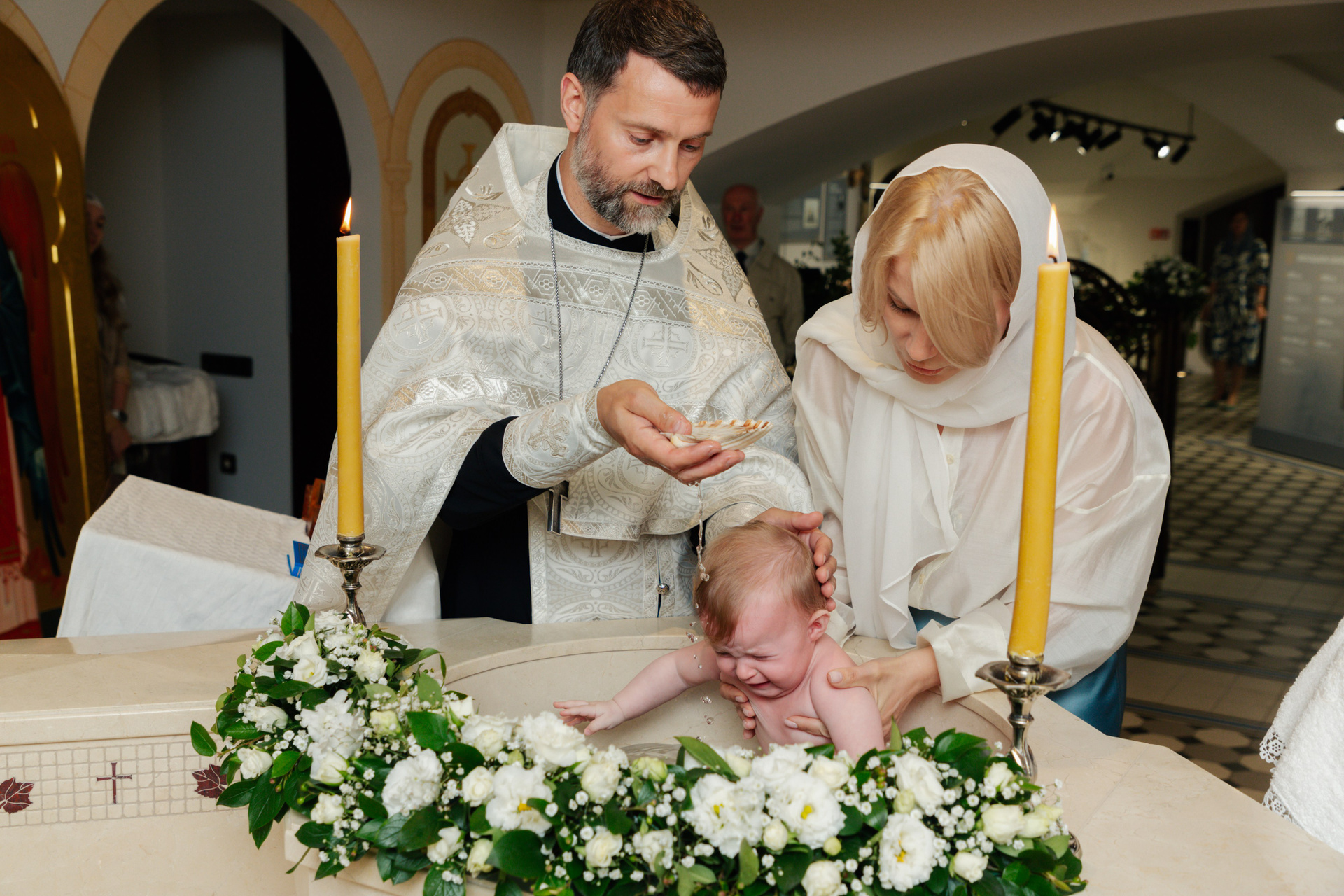 Крещение происходит в цокольном помещение в новой церкви (полная конфиденциальность) или можно попросить проведения крещения в часовне, но соответственно буду рядом ходить прихожане часовни, фото получаются разные в двух этих помещениях. Довольно светлое помещение, стоимость проведения индивидуального крещения на июнь 2025 г составляет 4000 руб, время примерно 35 мин.